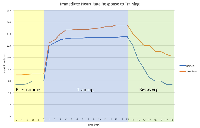 심박수도 산소섭취량과 유사한 반응을 나타냅니다. 운동 강도가 높아질수록 더 높은 항정상태 심박수에 도달하지만, 일정 시점 이후 모두 항정상태를 유지하게 됩니다.
