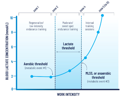 💡 즉, 젖산 역치는 피로가 급격히 증가하는 운동 강도의 기준점을 의미합니다. 젖산 역치는 운동 강도를 평가하는 중요한 지표이며, 특히 지구력 스포츠(수영, 사이클, 철인 3종 경기 등)에서 중요한 역할을 합니다.